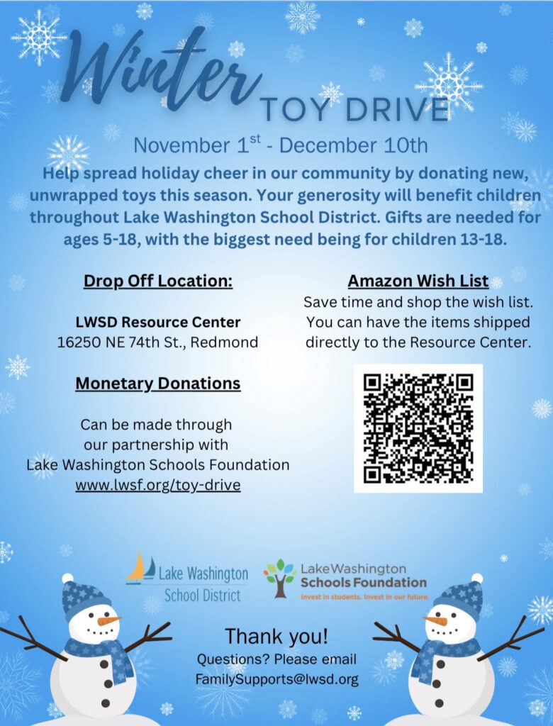 From Allie Moses, Counselor: This year we are going to try something new for our Winter Wishes, previously known as Holiday Giving. We are joining forces with LWSD Family Supports. The Frost community exceeds in giving and I am hoping that will continue this year. Thank you for supporting Frost and LWSD families.